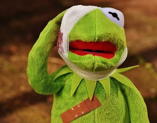 Doch genau wie bei Kermit hier unten auf dem Foto gehören Schürfwunden, kleine Schnitt- und Schnitzzverletzungen und Beulen samt Pflaster zur Kindheit mit dazu!